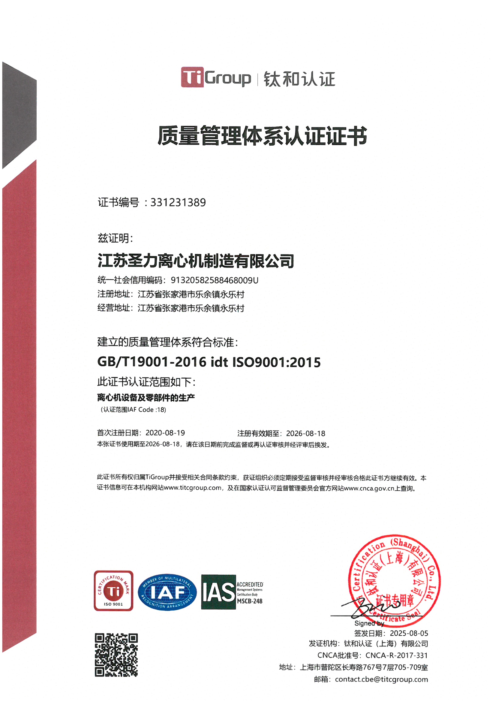 江蘇圣力離心機(jī)制造有限公司是國(guó)內(nèi)分離機(jī)械行業(yè)中主要的離心機(jī)生產(chǎn)企業(yè),對(duì)離心機(jī)的研究、設(shè)計(jì)、制造有多年的歷史,擁有齊全的設(shè)備、完善的檢測(cè)手段。公司已通過IS09000國(guó)際質(zhì)量體系認(rèn)證、ISO14001環(huán)境管理體系認(rèn)證、ISO45001:2018職業(yè)健康安全管理體系認(rèn)證和CE認(rèn)證,是江蘇省高新技術(shù)企業(yè),曾榮獲國(guó)家和地方多項(xiàng)榮譽(yù)稱號(hào)。